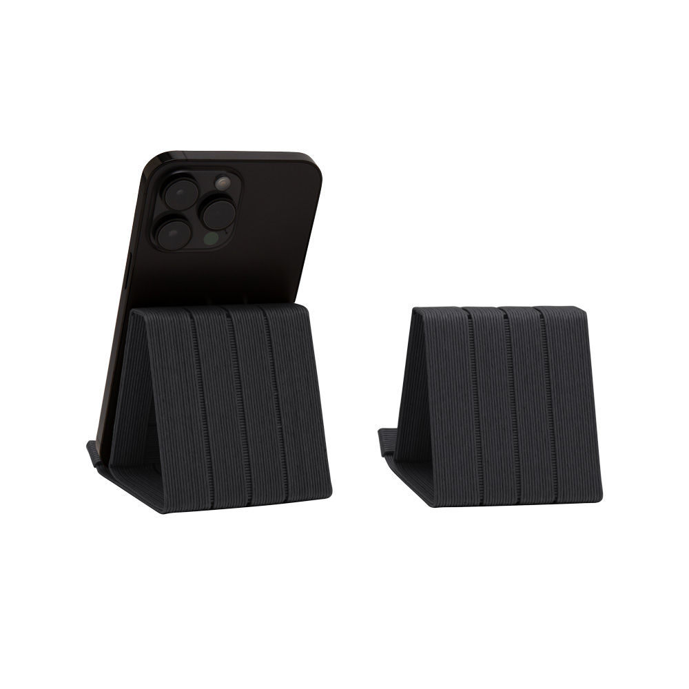 シンプルでモダンなスマホスタンドは、素材同士の交差部分を一つひとつ丁寧な手作業で貼り合わせているため、とても丈夫です。